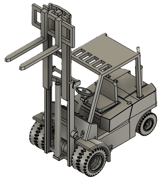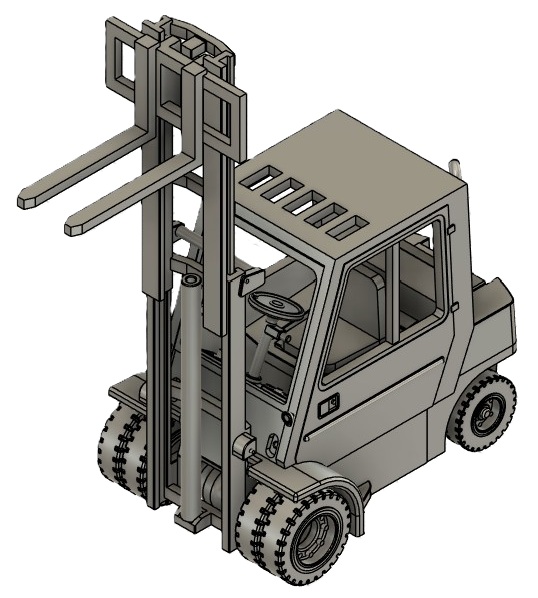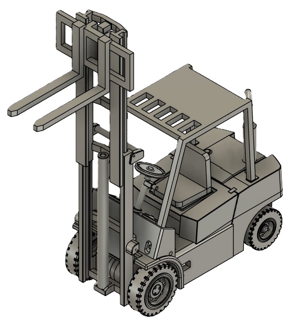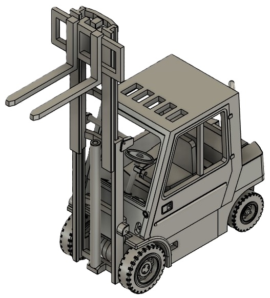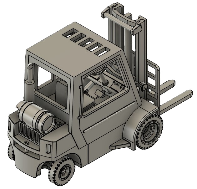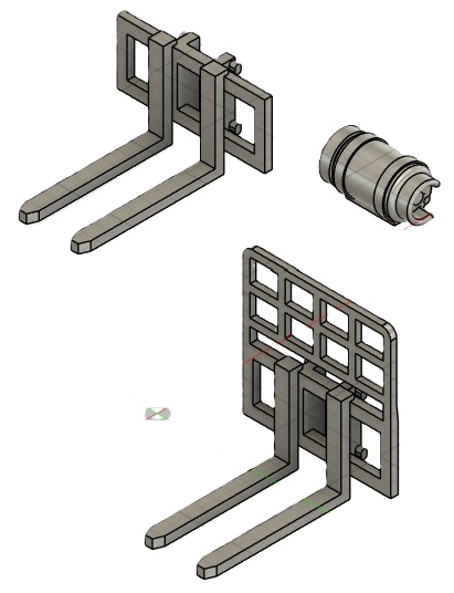 - zum Lieferumfang gehören ein im 3D-Druck erstellter Gabelstapler mit vier verschiedenen Gabeln und einer Gasflasche