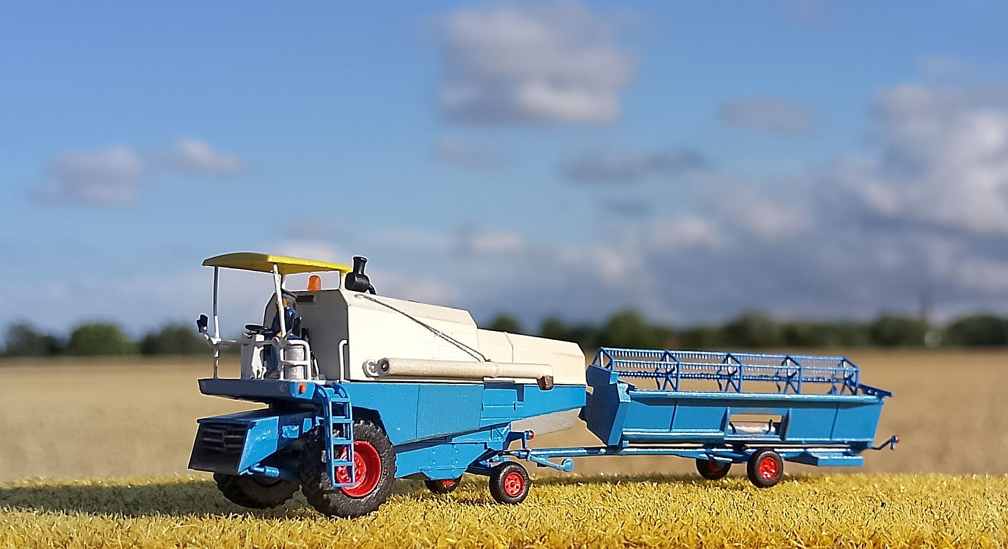 Mähdrescher E512 mit Sonnenverdeck für blau/weiße Lackierung